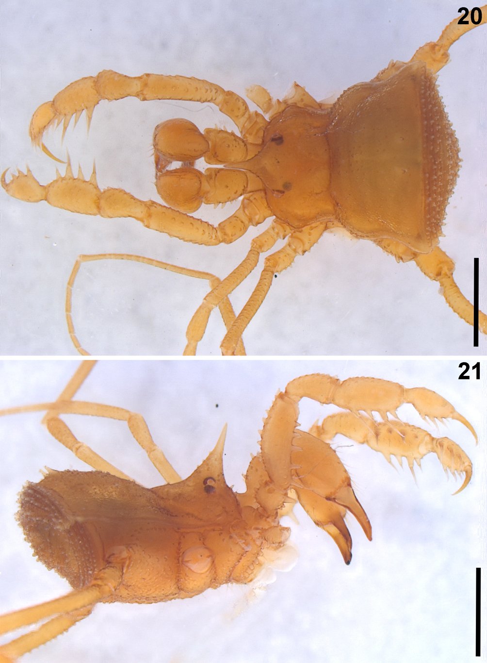 Additional material examined: 2 males (CNAN) from San Andrés Tenejapan, (18º47’34.86” N, 97º06’11.88” W) Tenejapan, Veracruz, Mexico, March 24, 2007 (O. Francke, C. Santibáñez, H. Montaño, A. Valdez, A. Ballesteros, colls.). Male (CNAN) from Instituto Superior de Zongolica, Zongolica, Veracruz, January 23, 2010. (O. Francke, J. Cruz, C. Santibáñez, A. Valdez). Six males and 4 females (CNAN) from Sótano de la Cruz de los Naranjos (18º56’38.36” N, 96153’13.74” W) Amatlán de los Reyes, Veracruz, April 14, 2011 (O. Francke, J. Cruz, G. Contreras, J. Bokma, P. León, C. Solis, J. Coria, P. Jiménez, colls.). Male and female (CNAN) from Sótano de la fertilidad y Sótano desbloqueado (18º56’38.36” N, 96º53’13.74” W) Amatlán de los Reyes, Veracruz, April 14, 2011 (O. Francke, J. Cruz, G. Contreras, J. Bokma, P. León, C. Solis, J. Coria, P. Jiménez, colls.). Female (CNAN) from Cueva Ojo de Agua (18º48’20.34” N, 97º06’03.72” W) Tlilapan, Veracruz, 03 January, 2012 (O. Francke, J. Cruz, C. Santibáñez, A. Valdez).