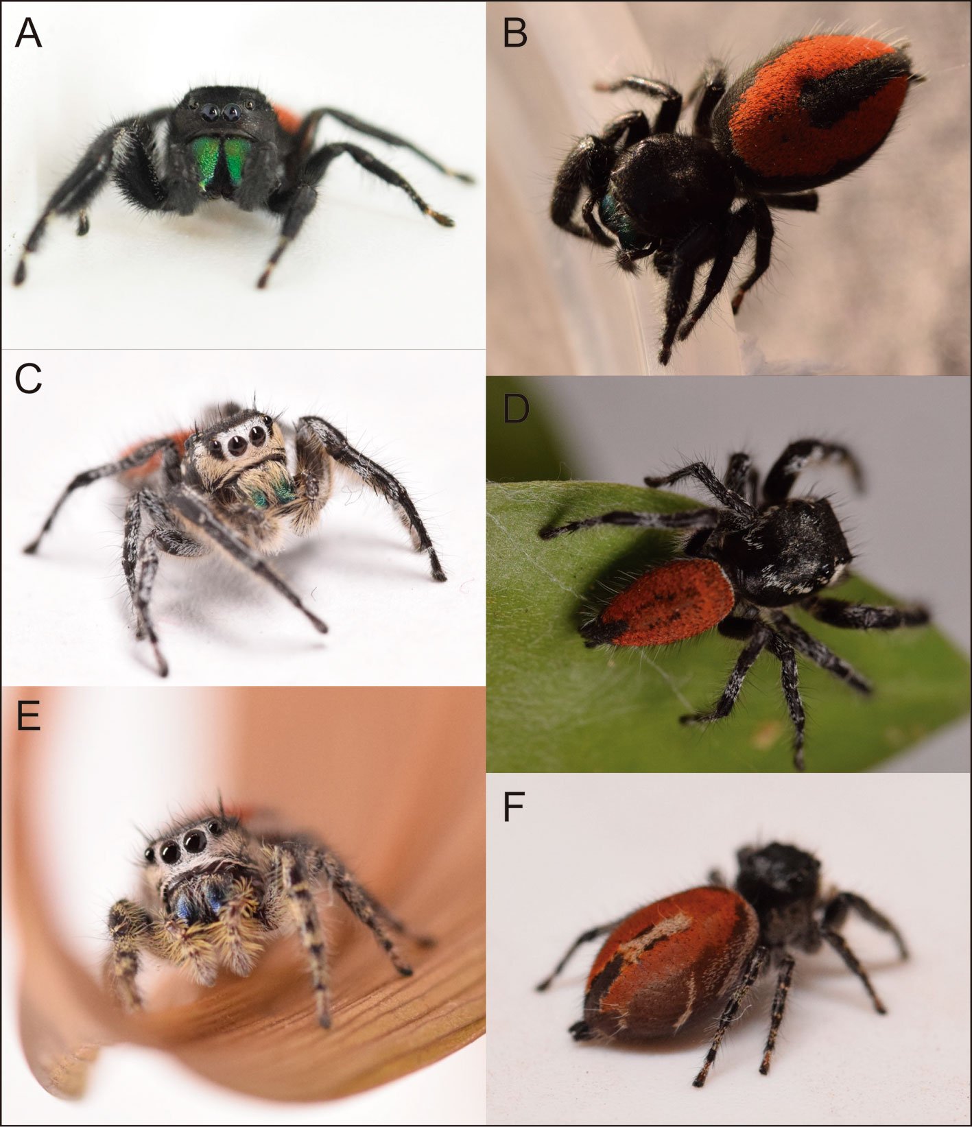 The spider family Salticidae (also known as jumping spiders) has more than 6,000 described species worldwide (World Spider Catalog, 2022). In addition to being species-rich and diverse, salticids have been model organisms for studies on phylogenetics and evolution (Bodner & Maddison, 2012; Hill & Richman, 2009; Maddison et al., 2017; Penney, 2010), ecology (Maldonado-Carrizales & Ponce-Saavedra, 2017; Rubio et al., 2019) and behavior (Ceccarelli, 2008; Jackson & Pollard, 1996; Lim & Li, 2006), given their varied and at times highly specialized life strategies. A North American genus of jumping spiders, Phidippus has attracted particular attention due to the relatively large size of the species, conspicuous colors, and diversity, counting to date 61 described and valid species for North America, of which 42 are found in Mexico (Edwards, 2004, 2020; Hernández-Salgado et al., 2022).