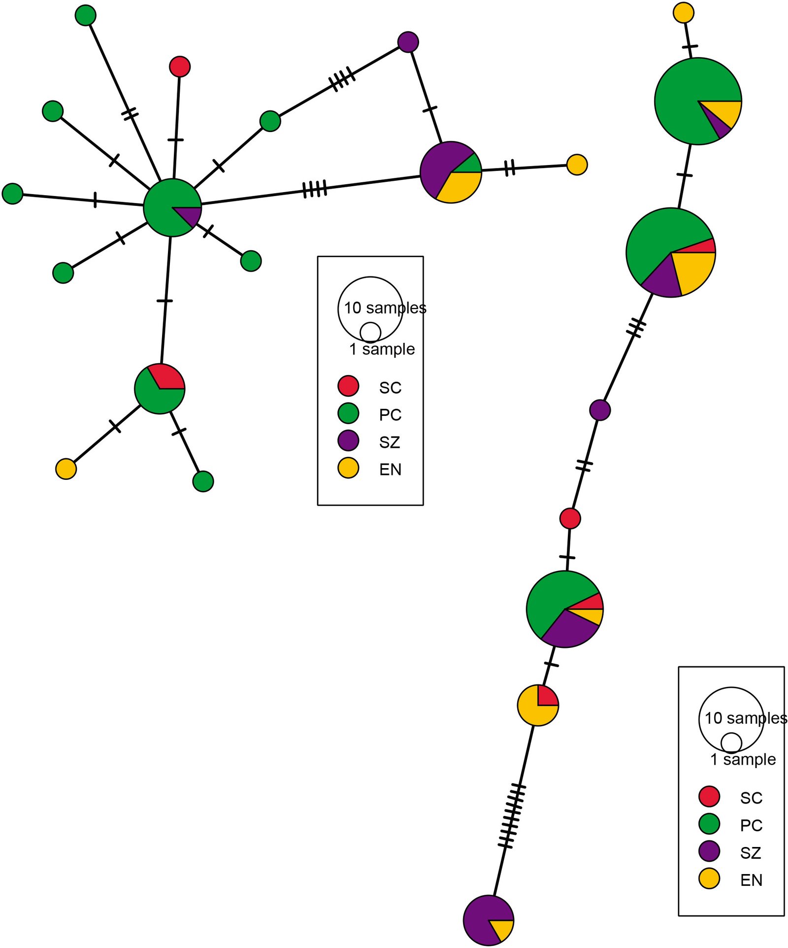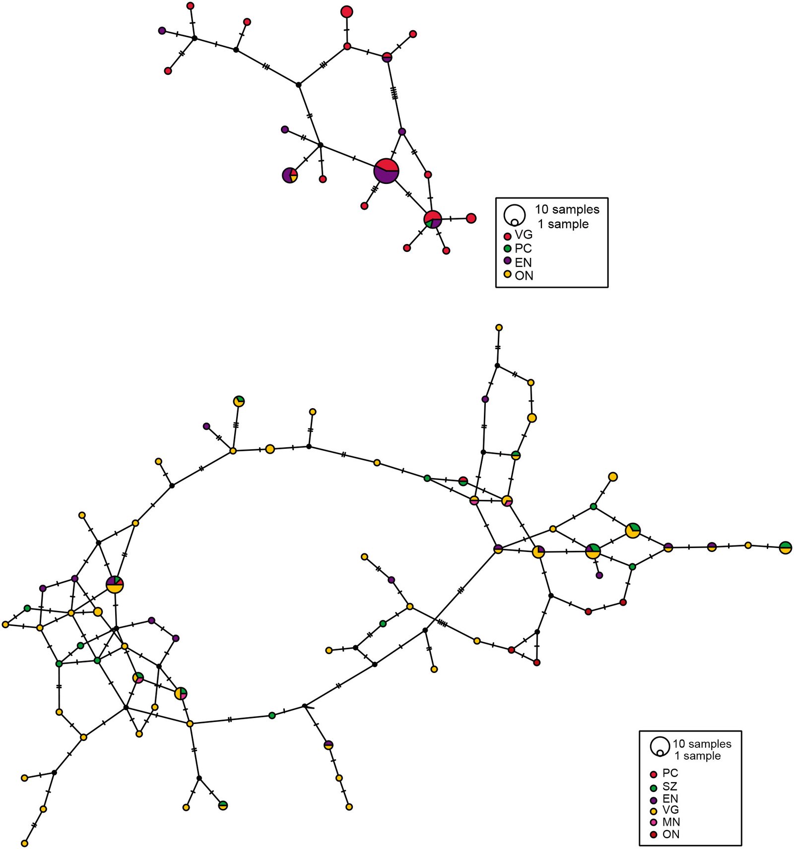 Leigh, J. W., & Bryant, D. (2015). PopART: Full-feature software for haplotype network construction. Methods in Ecology and Evolution, 6, 1110–1116. https://doi.org/10.1111/2041-210X.12410